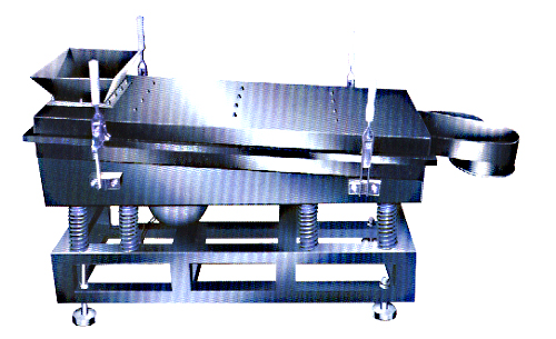 本机上部采用快拆式手柄,把整机连成一个整体,上盖采用全密封,有效防止物料在过筛时由于振动而产生粉尘飞扬。筛体下部安装振动电机,有效保证了设备的结构紧凑,下部采用弹簧减振,使整机在平稳状态下工作。下面底座采用可调式,可调整在过筛时的筛面倾斜角度,根据物料特性以取得最佳过筛效果。